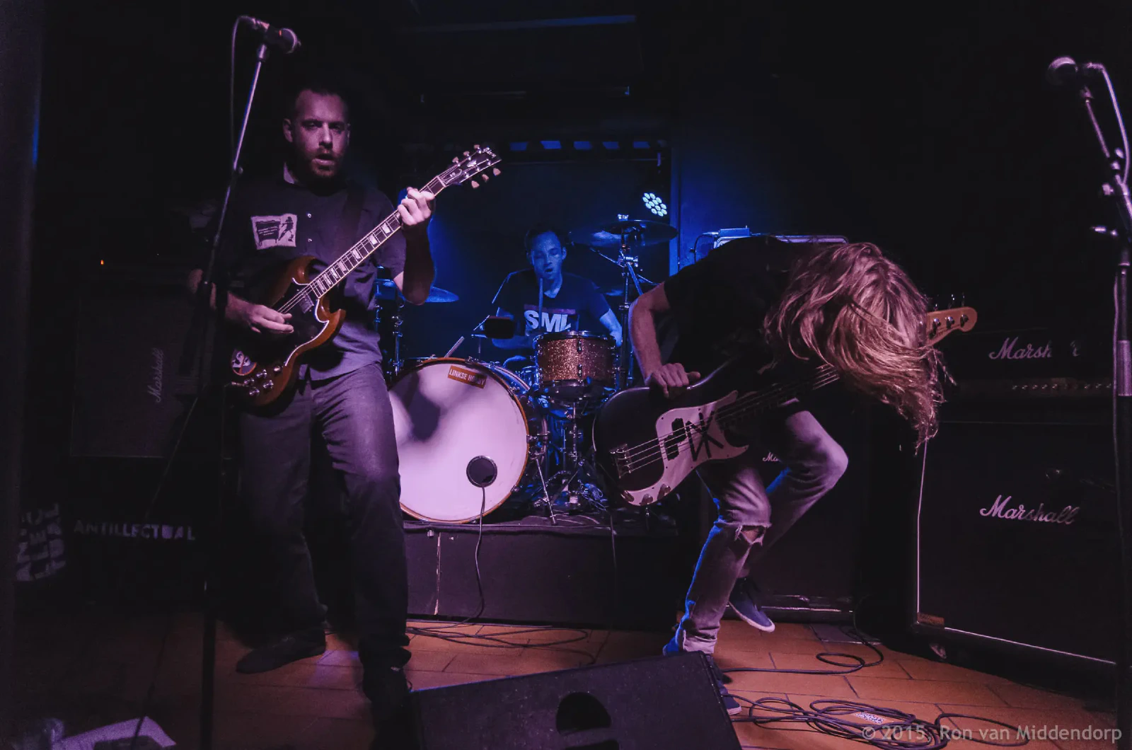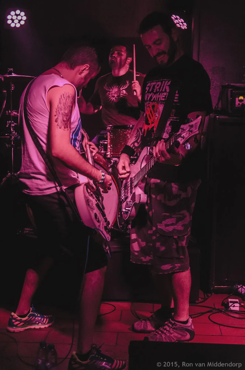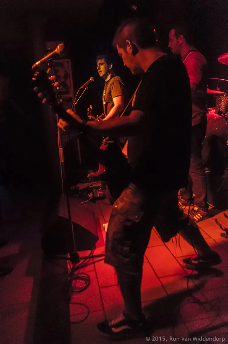 As the first band walks on stage, the club is about half-full and already I can feel the temperature rising. I am mainly here because of Antillectual, a band from The Netherlands with which I hope to have a chat and maybe talk into doing a crazy outdoor photo shoot. Even though Sabotage is a small venue and punk-rock usually is more about attitude than quality, the guys are nervous. All the bands are nervous. And some appear to be already pretty drunk. As usual, after the soundcheck they went for dinner and, well… need I say more?